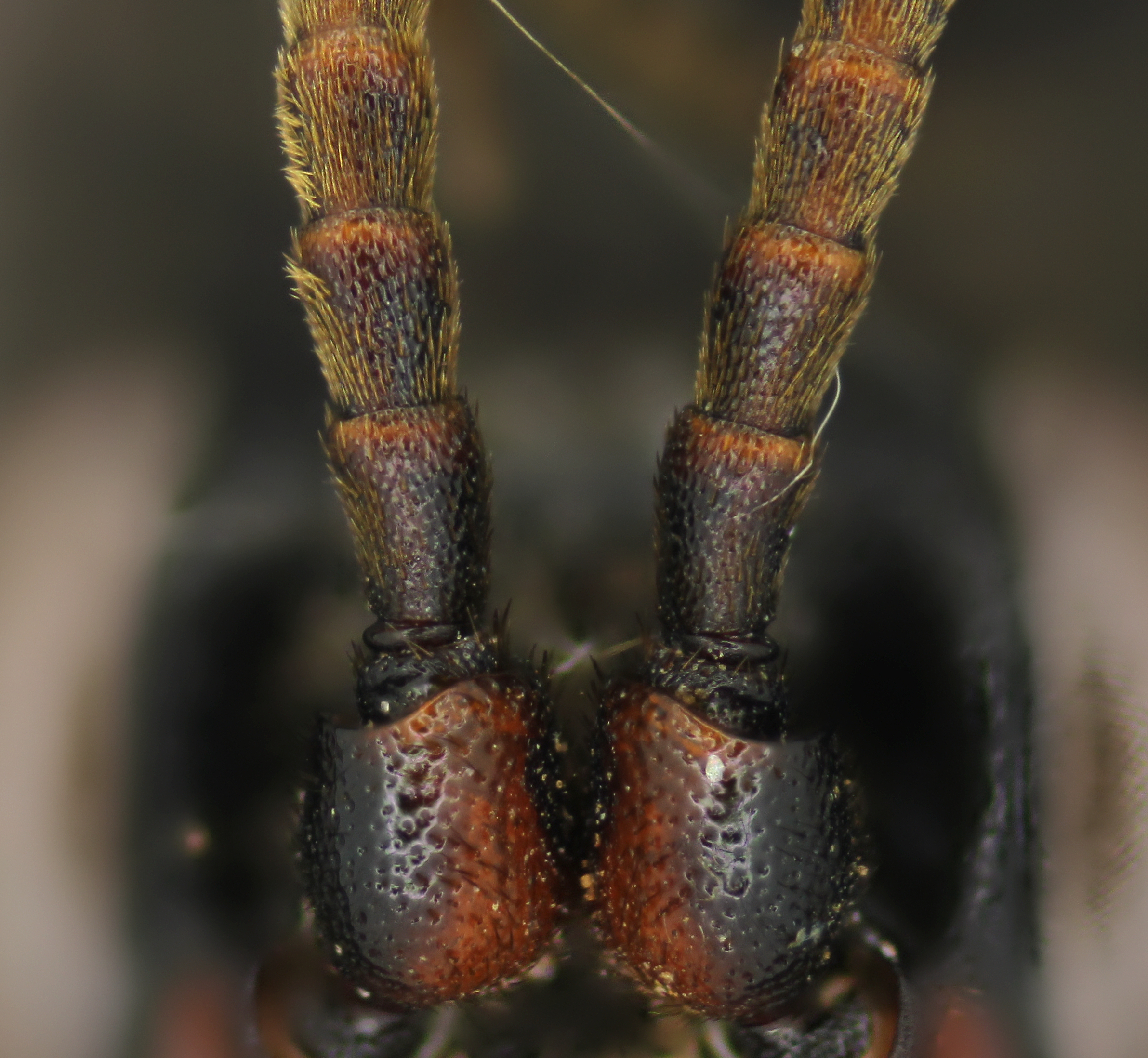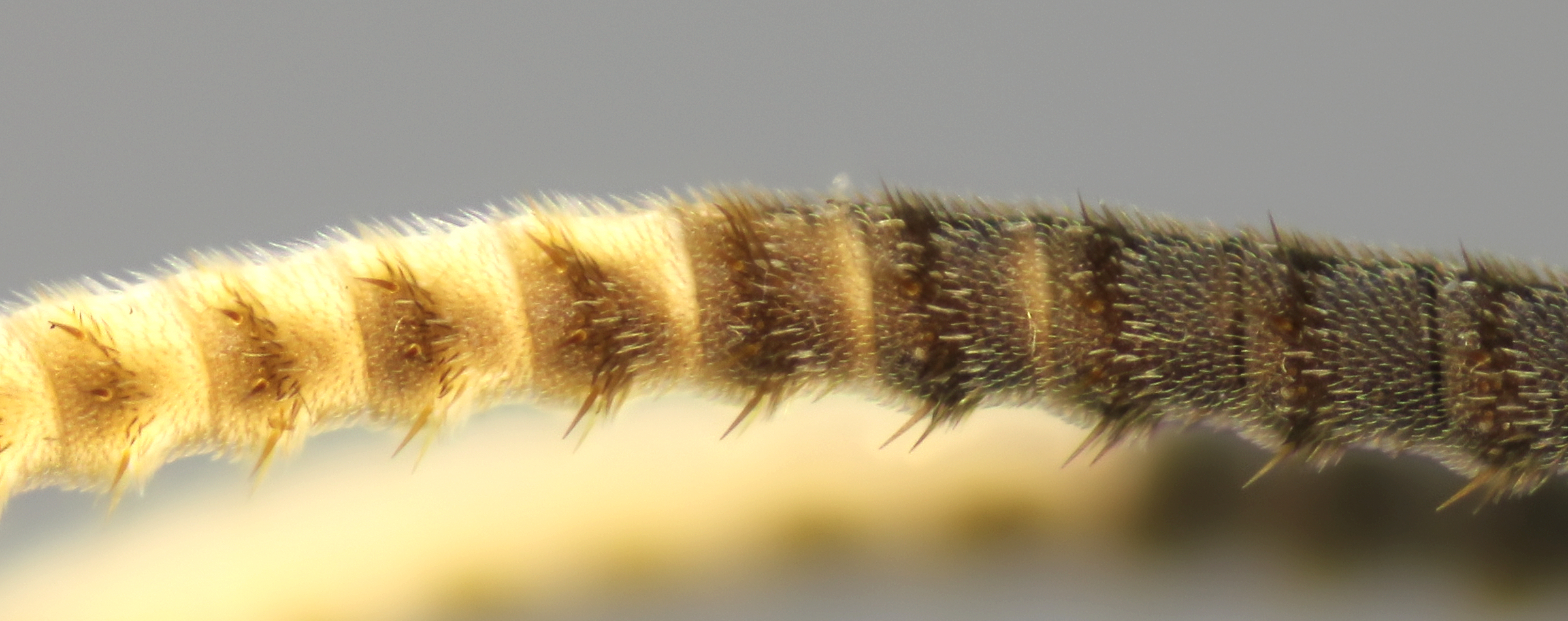 The majority of ichneumonine males have simple filiform antennae where each individual flagellomere is roughly cylindrical. Bristle ridges are modifications of the flagellomeres in which nodose transverse ridges are present along the venter of each flagellomere, complete with a few projecting bristles. The development of bristle ridges occurs along a spectrum. Cratichneumon and Coelichneumon both have somewhat weak bristle ridges, while in Melanichneumon they are even more defined. Overall, bristle ridges are less common in temperate taxa than in tropical ones but strongly developed bristle ridges can be seen in Carinodes, Plagiotrypes, Setanta, Tricholabus, and Trogomorpha, which occur in the Nearctic and Neotropics.